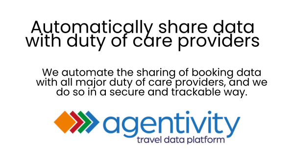 A presentation slide about automatic data sharing for care providers, featuring the agentivity travel data platform logo.